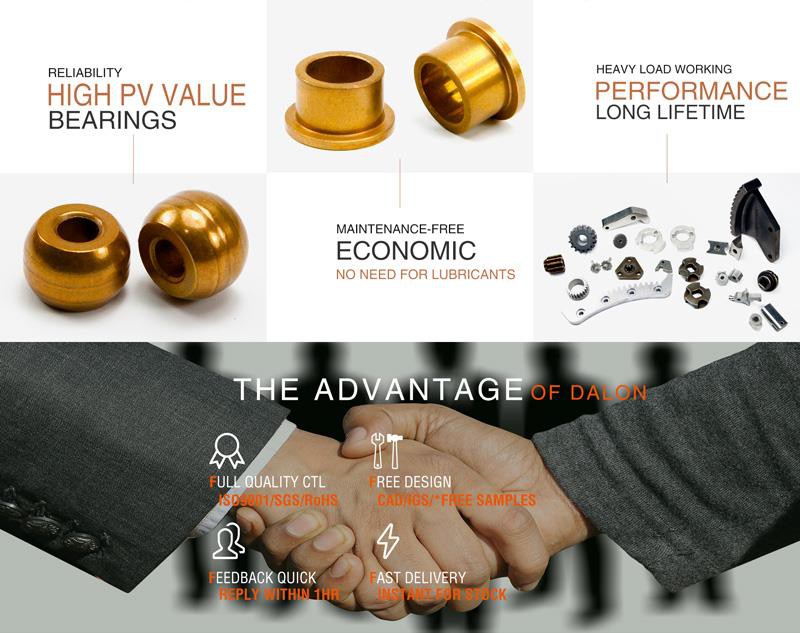 OILITE BRONZE BUSHINGS standartinės geometrijos, tokios kaip cilindriniai, flanšiniai ir rutuliniai guoliai, DALON taip pat vystosi sudėtingų tipų P / M, pritaikant specialios paskirties reikalavimus.